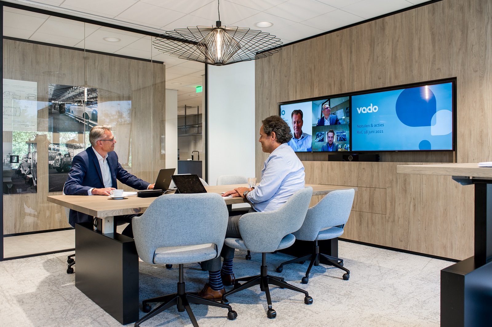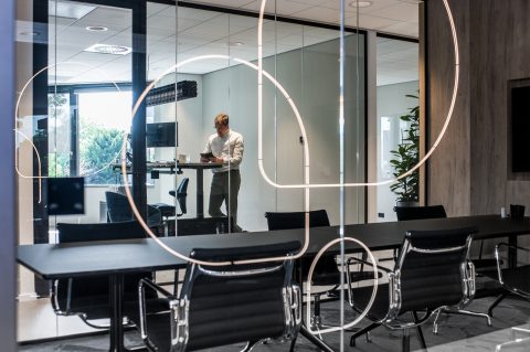 In a fully modernised office where, in addition to a substantial modernisation of the interior, the necessary attention was also paid to a more sustainable energy supply and by improving the air quality by means of a new ventilation and climate control system and better insulation. Obviously, the possibility of hybrid working, whereby the combination of working at the office and at home is better supported, has been taken into account.