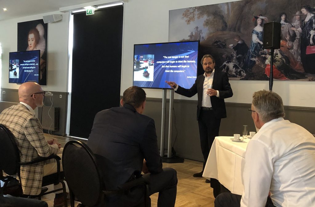 Carlo van de Weijer gaf een uitdagende presentatie waarin hij liet zien dat je high-tech oplossingen als AI en Robotics als een bedreiging kunt ervaren maar ook als een oplossing voor maatschappelijke vraagstukken als bijvoorbeeld energietransitie en logistiek. Arjen Struik, Olav Provily en Bas Ooteman introduceerden de aanpak van de Climate Neutral Group om bedrijven te helpen van ‘A naar Zero CO2’. Ook bij hen kwam de stelling op tafel dat je dit als bedrijf kan zien als een risico maar dat je het ook actief kan omarmen als een opportunity waar je als bedrijf én als individu een belangrijke bijdrage aan kan geven.
